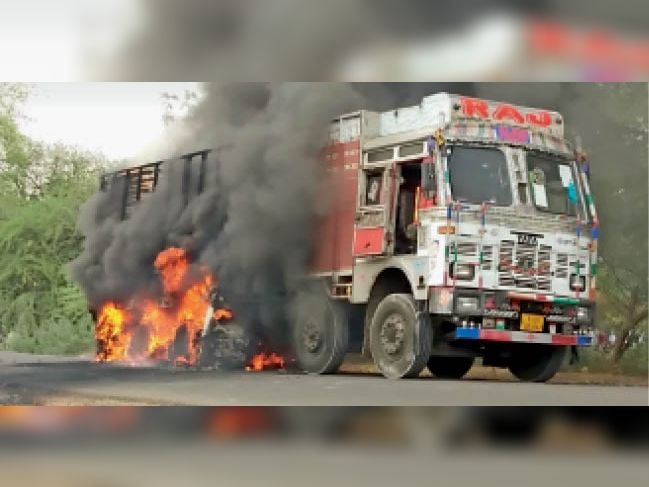 Maharajganj News : भिटौली में चलती ट्रक में लगी आग, एक व्यक्ति झुलसा