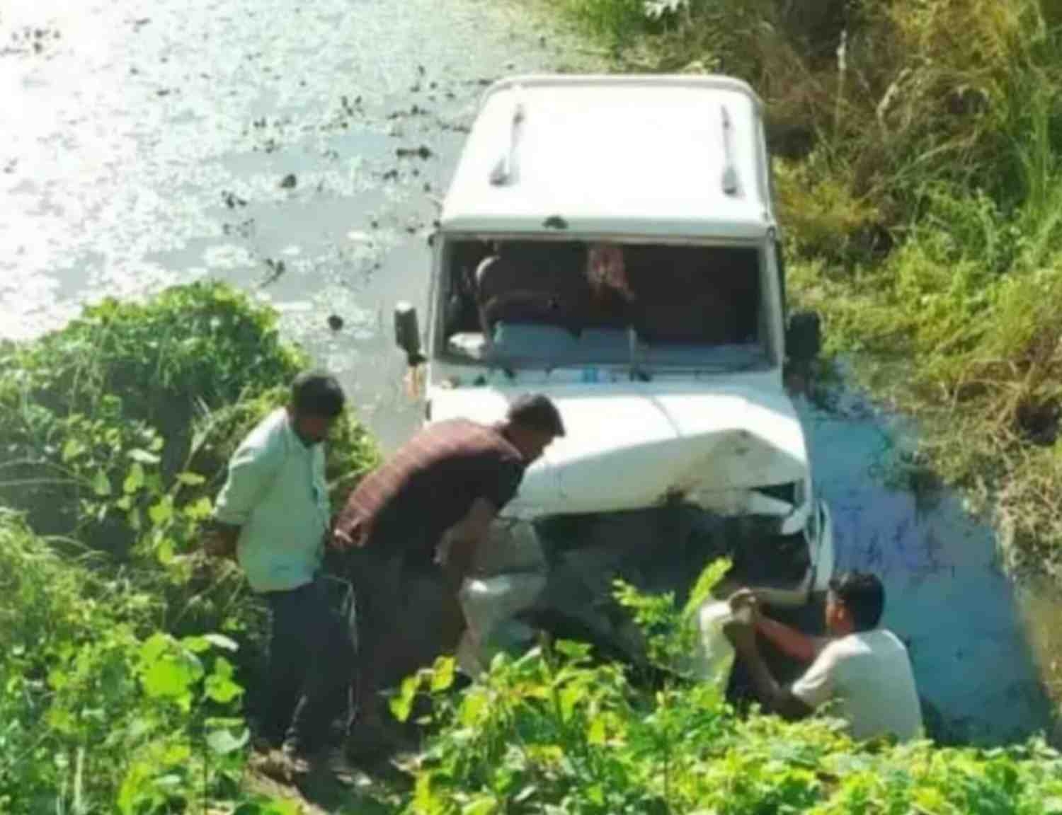 Maharajganj News : अनियंत्रित चार पहिया वाहन गड्ढे में पलटा, तीन लोग घायल