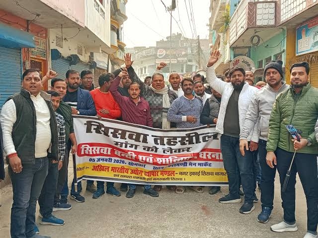 महराजगंज| सोमवार को सिसवा बाजार को तहसील बनाने की मांग को लेकर नगर के व्यापारियों ने पूर्ण बंद रखकर विरोध प्रदर्शन किया।