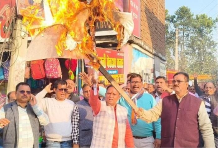 महराजगंज। टेट अनिवार्यता के प्रश्न पर केंद्रीय शिक्षा राज्यमंत्री जयंत चौधरी के संसद में दिए गए बयान के बाद जिले के शिक्षकों में भारी आक्रोश देखने को मिला। शिक्षक भवन के सामने टीचर फेडरेशन ऑफ इंडिया एवं उत्तर प्रदेशीय प्राथमिक शिक्षक संघ के आह्वान पर जिलाध्यक्ष केशव मणि त्रिपाठी एवं जिला मंत्री सत्येंद्र कुमार मिश्र के नेतृत्व में शिक्षकों ने केंद्रीय शिक्षा राज्यमंत्री का पुतला फूंका।