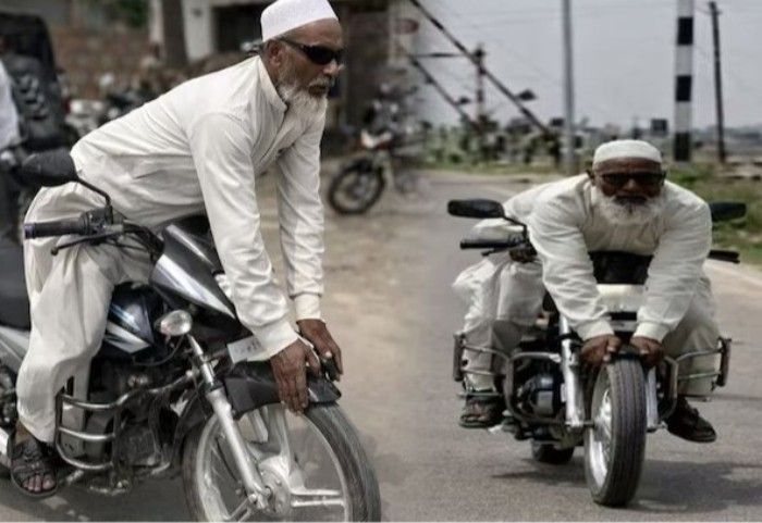 वीडियो में यह भी दिखाई देता है कि मौलाना मोटरसाइकिल के आगे की तरफ लेटे हुए हैं, जबकि बाइक तेज़ रफ़्तार से चल रही है। दूसरी तरफ से एक और मोटरसाइकिल आ रही है, एक तरफ एक क्रेन खड़ी है और वीडियो में आस-पास एक रेलवे लाइन भी दिखाई देती है।